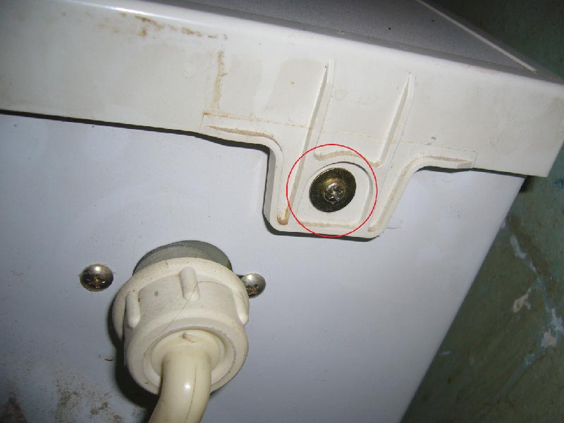 Сперва снимите верхнюю крышку, для этого открутите два самореза на тыльной стороне стиральной машины.